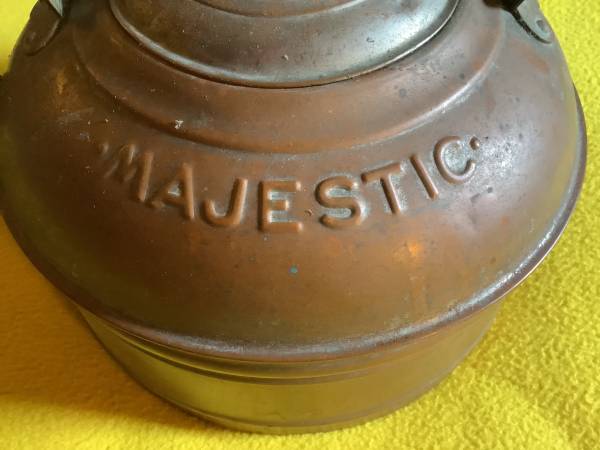 I have for sale one Vintage Majestic Copper and Brass Tea Kettle. This has a wood grip handle. This is in used and vintage conditions not mint condition. If interested please call me at . Thank you...