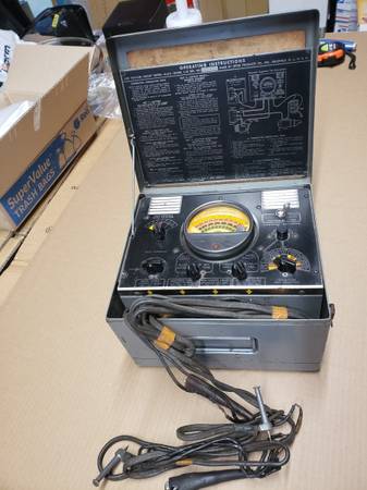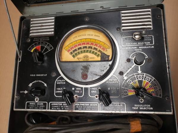 This is old military equipment. My grandpa used to use it at his auto repair shop in Chicago before I was born. Some of the wiring will need to be replaced on the testing cables. Its old.