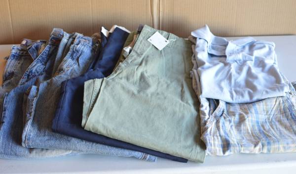 Included are 3 pairs of jeans, 2 pairs of pants, 1 pair of shorts, and 1 short sleeve top.