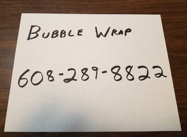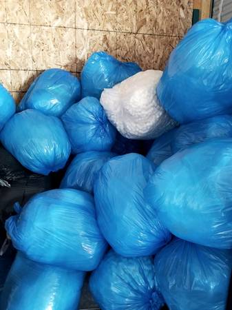 I have a large quantity of clean used bubble wrap and air bags that are ideal for shipping, moving, etc. There are mixed sizes in each bag - small bubbles, large bubbles, and various sizes of air bags. I am selling them for $7.00 per bag for individual bags, or 5 bags for $30, or 10 bags for $50. I also have some very large bags (much larger than the one in the photo) of packing peanuts available at $25 per bag. That's a huge savings over buying them new.