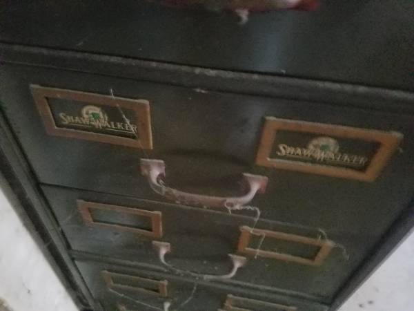 Shaw Walker Index Card File Cabinet 8 drawer, metal vintage--stored in a basement last 40 years--may have some medium corrosion near bottom--dont think its too bad though-I checked all the drawers they are clean and on the tracks--open fine -call peter show contact info