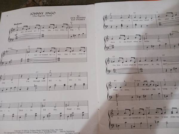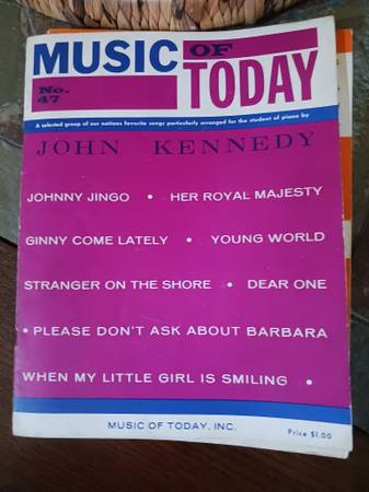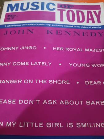 Offering a booklet of sheet music for piano with hits songs from early 60's. Booklet is in pristine condition having hits like Her Royal Majesty, Johnny Jingo, Stranger on the Shore, Dear One, ETC.Booklet contains eight (8) hit s from various recording artist. Booklet has no torn pages, no rips, no stains heck the pages aren't even discolored from 60 plus years of being stored Truly Remarkable