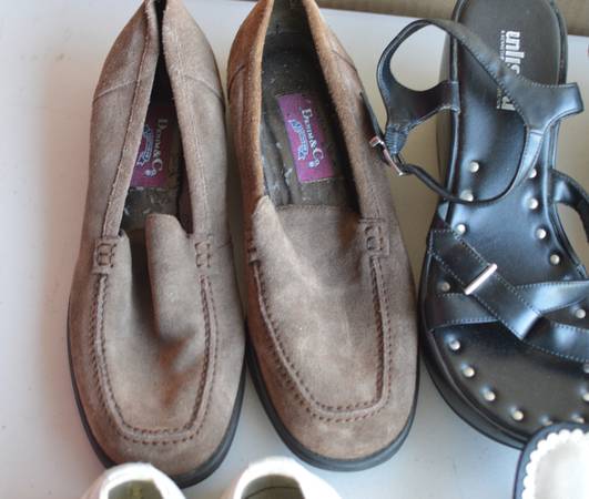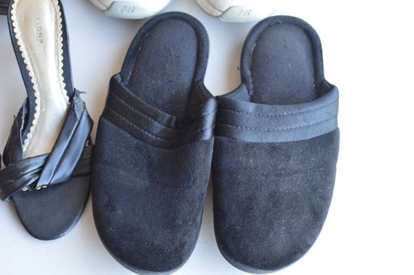 There are slippers, tennis shoes, amd dress shoes.