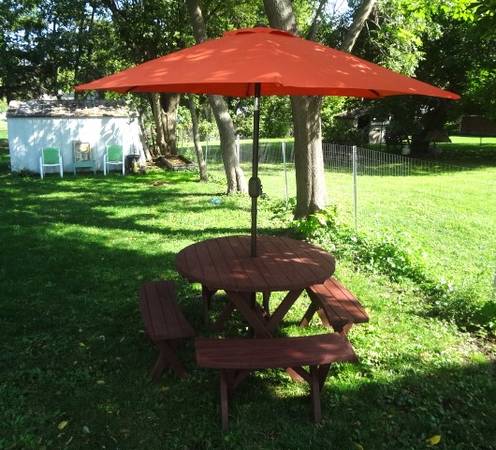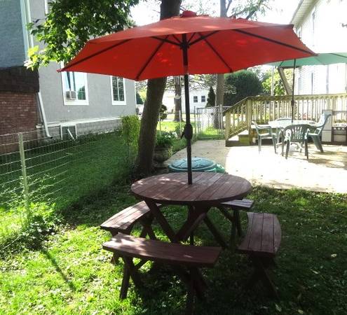 ROUND WOOD TABLE 42X42"AND 4 BENCH SETS ALL IN VERY GOOD CONDITION FOR ONLY $125 OBO CALL