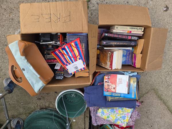 Come check out the free pile at our rummage sale through Sunday. 5840 W. Finley Road, Beloit.