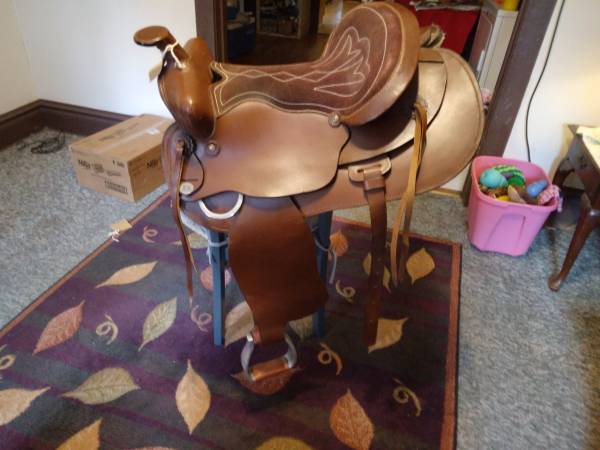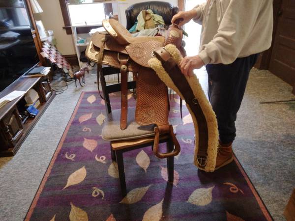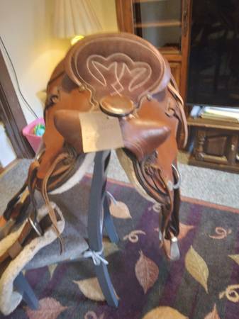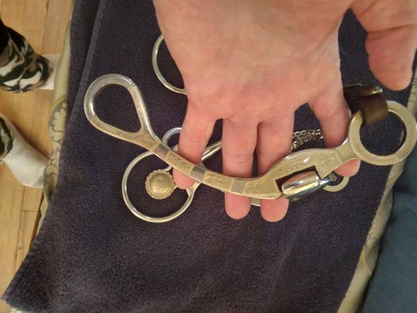 Western Silver Show Saddle 16 inch seat Custom Made By Buffalo Saddlery, like new only used less than a month light trail rides $200.00 King Series 17 in seat, only on a horse 3 times DID NOT fit my Arabian. Slight discoloration see pictures covered by legs n where you sit bought that way paid $600.00 selling $200.00 A no name 15 inch seat Saddle that I used all the time! $100.00 Two Silver Western Show Bits from the 70's from Libertyville Saddle shop $25.00 for the pair. I feel these are very fair prices. They have sat in my back bedroom. I can't ride anymore due to health issues. My ex husband who has cancer sold his farm has 30 days to move he's a invalid no family, me either. We're old. CASH ONLY PLEASE CALL show contact info
