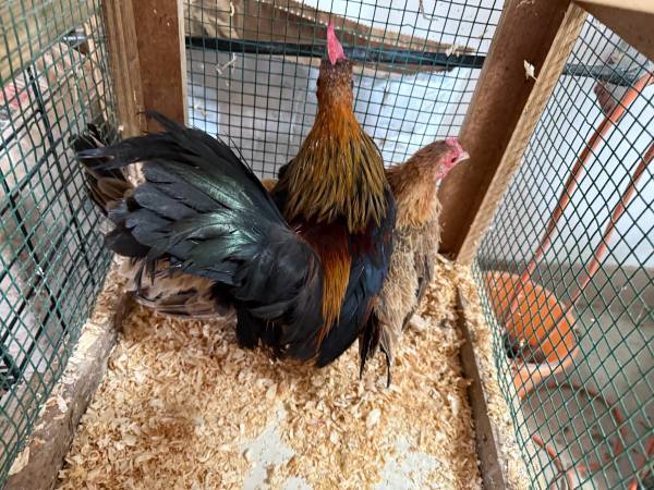 Serama hen and rooster. Have 2 hens and 2 rooster for sale. Asking 25.00 each. Please TEXT ONLY .