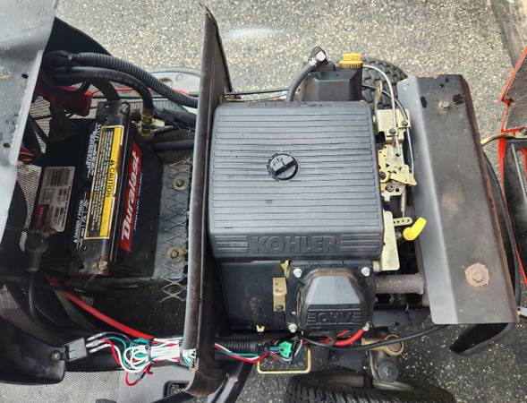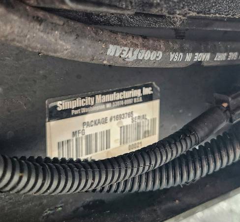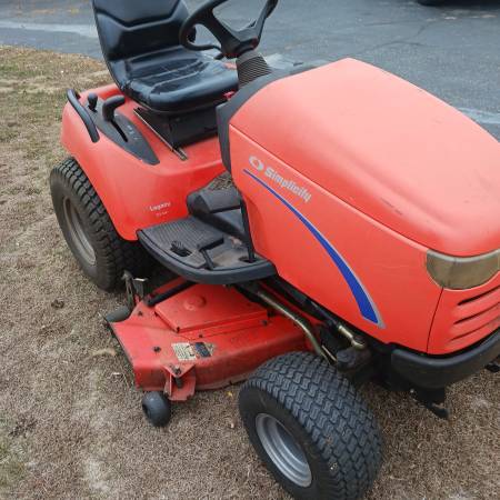 23 HP Kohler motor, 54" deck Simplicity Legacy lawn mower, non-xl model. Brand new seat as of 09-19-25, visible in 1 photo, the old seat is in most. Newer mower blades from last spring or the spring before. This mower is pto driven not belt driven and built to last. Runs well, just got it home and cleaned it up taking some photos of the bottom of the deck and the tractor with the deck off. The tires are in good shape and it is only being sold because I got a compact tractor, otherwise I would still be using the mower. New PTO switch and PTO electric clutch last summer. 1516 hours, but it's also 25 years old.