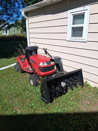 Craftsman mower with snowblower and mower deck 525 or obo .cubcadet with heavy duty trailer hitch 550.gorilla wagon brand new or best offer from farm in fleet is new