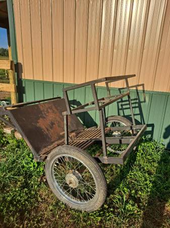 Very solidly built cart with upgrades. Motorcycle wheels and paddle brakes. Shafts are easy to take off and put on for simple transport. No need for a whole ordeal when trailering out for a drive. I have the materials for a new seat including a good marine vinyl which is UV and moisture proof. I simply haven't gotten the time to throw it together. 10 minute job at most. I can either do it or I will send the materials along with it in case you want to do a different color vinyl.