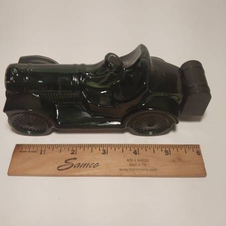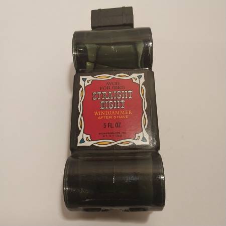 The Avon Straight Eight decanter, shaped like a classic car, was primarily manufactured during the 1970s. Specifically, some listings mention production from 1969-1971 The bottle is typically made of green glass and was designed to hold Wild Country aftershave. *** This decanter is "Windjammer" after shave. ****