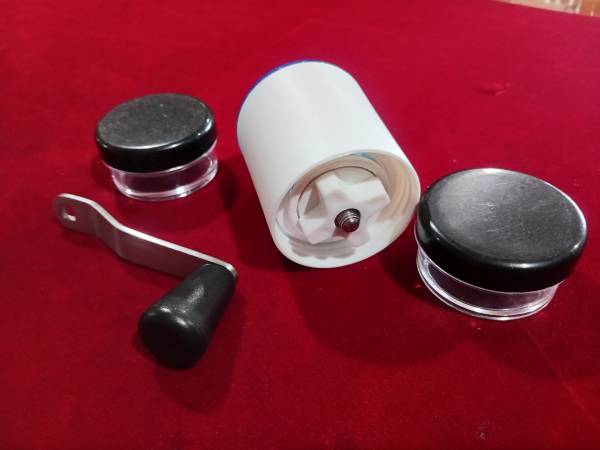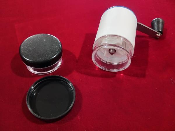 Offering a new no name pill crusher/grinder that will come as a sturdy container with a hand crank and two desperate containers for pills -ground/crushed or not. This is a brand new never been used...