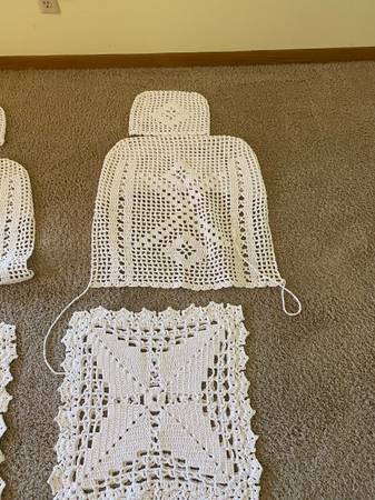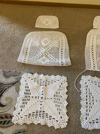 Clean, white, beautiful handmade Backseat, the seat, and headdress covers