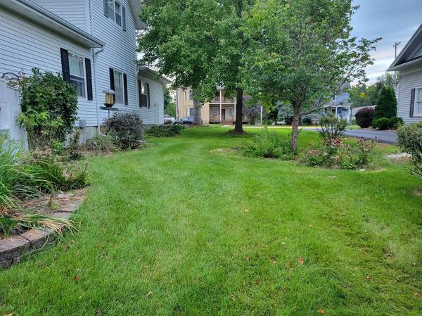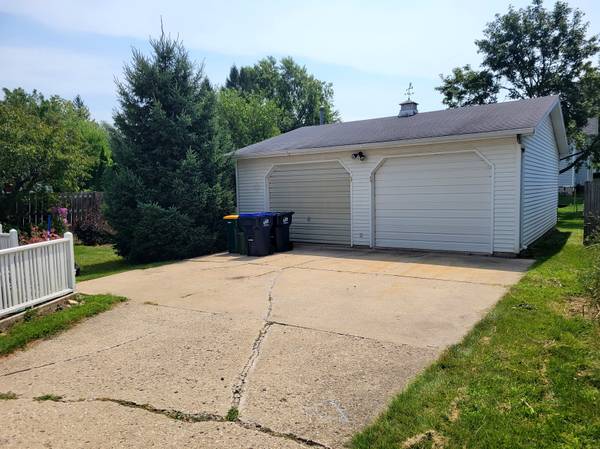 Spacious 4 bedroom 1.5 bathroom 2 story home on a nicely landscaped .23 acre level lot with beautiful perennial flower beds, mature trees and a back patio. Beautiful original hardwood flooring throughout, breakfast bar in kitchen, large L-shaped living room with dining area, den/office, boiler (hot water) heat, lots of storage space in the basement, cable wired, front has sidewalk and covered front porch entry, 2.5 car detached garage with modine LP gas heater and a concrete driveway. Inclusions are stove, refrigerator, microwave, washer, dryer, humidifier, window air conditioner and water softener. Within walking distance to schools, parks, library and local businesses.