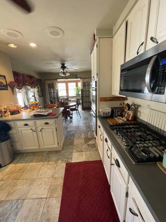 This main area has 4 bedroom 3 full bathrooms and 1 half bath. 18x22 open living room flowing into an open concept Dining room / open foyer with gas fireplace with 2 double interiors French door flowing into the 4-season sunroom / from the dining room and again from the oversized Kitchen/ breakfast area, the full 4 season room 9x22 full of windows and a back door leading to a new 38 ft x 16 foot well decorated private wood decking built 2022.