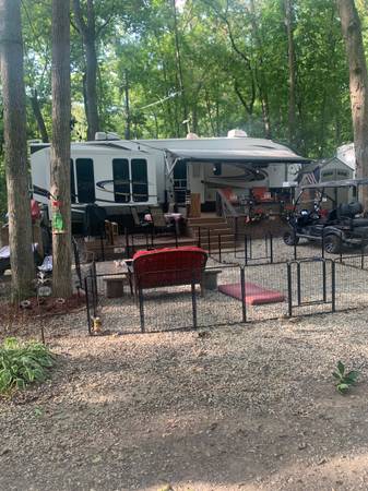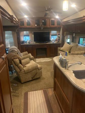 2015 forest river Wildcat model 327CK. Upper king size bed. Pull out sofa bed with air mattress. Lots of wood cabinets. Electric fireplace. Two televisions. Two AC units on top. Three holding tanks each 50 gallon. Gas stove and oven. Microwave. Very clean and very nice. Has been a destination trailer in local campground since 2020. Roof has been treated every year with rv roof protection solution. Rv has good tires and nice wheels. Everything works!