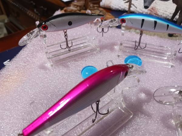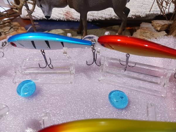 I am offering five (5) new floating fishing lures that will come to you all in one size and weight. That being 3/16 ounce and 4" long. All measurements are from the tail to the front lip (Bill) Please look at my pictures very closely because what you see is exactly what you'll receive. Please notice the vibrant colors with metallic like finishes having dots-dashes-slashes-hash marks-red eyes-and fish scale appearances. What you won't see is that all five have "BALLS" -- on the inside to generate noise while teasing and attracting predators. Increasing your odds and chances of getting the "BIG ONE" L-#66