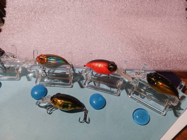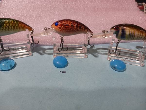 Offering nine (9) new floating lures of 2 different length and weights Lures 1-4 are 3/16 ounce with a length of 3" While lures #5-9 are 2.25" long and weight of 1/12 ounce each. All measurements are from the tail to the front of the lip (Bill) Please look at my pictures closely as you will see what you'll get. That being vibrant colors with dots-dashes-slashes-stripes-red eyes wide eyes, horizontal and vertical markings. What you want see is that all nine lures have "BALLS" on the inside to make noise and attract the predators.Just might increase your chances on nailing the BIG ONE L-#61