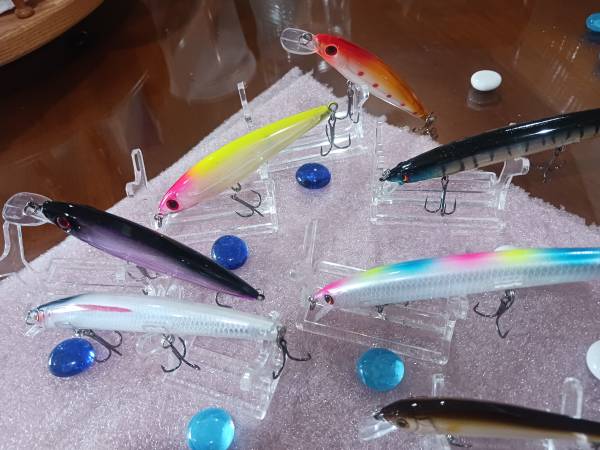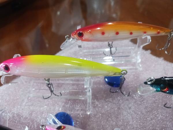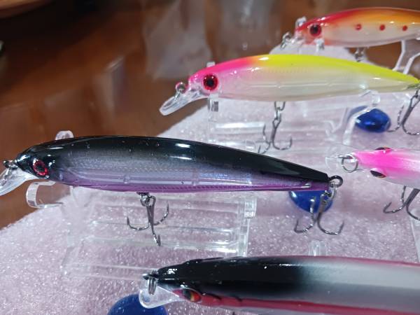 Offering seven (7) new sinking=floating-suspended fishing lures as follows: Lure #1 is the multi colored clown that is 5.25" and 3/16 Oz floater along with #2 -#4 being floaters medium size 4.25" and 3/16 oz. black minnow with purple bottom, chartreuse with red head and orange body with orange dots, #%/#6 again 5.25" and 3/16 oz. suspended lures silver body with red stripe and back and silver body with blueish green face Finally the smallest #7 is a sinker at 3 1/8 " long and 1/16 bounce All measurements are from the tail to the front of the lip (Bill) Please look at all lures closely for color sand markings because what you see is EXACTLY what you'll receive. What you can't see is that all seven lures have "BALLS" on the inside to make noise and attract as well as tease the predators. Hopefully increasing your chances and making the odds more favorable. L-#51