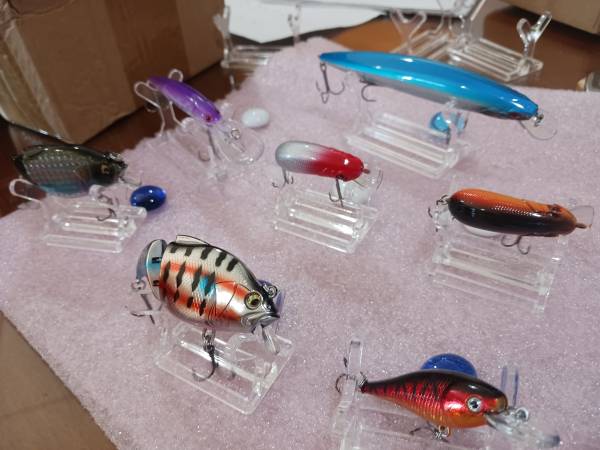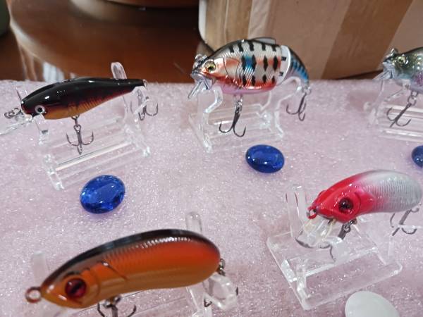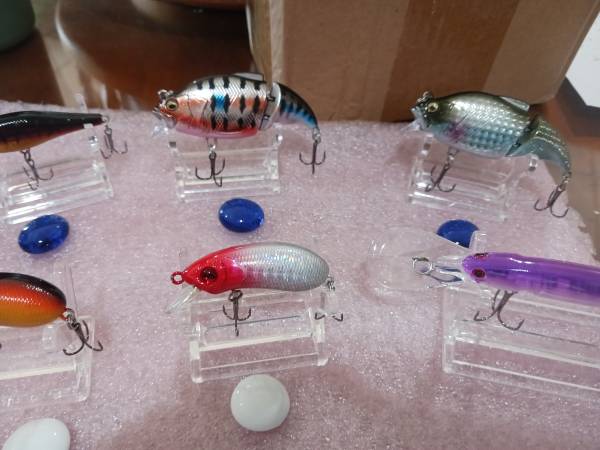 Offering seven(7) NEW sinking-floating-suspended fishing lures. All lure pictures have colored stones next to them which represents the buoyancy and all measurements are from tail to front of lip (Bill) They are as follows: Light Blue Stone = Floater 51/2 " 9/16 oz Bright blue back silver sided black face,Dark Blue Stones = SUSPENDED #2 3" 1/4 oz jointed black back and silver sides,#3 3' 1/4oz jointed black back multi colored sides vertical black stripes, #4 2.5" 1/8 oz dark maroon back and lighter maroon sides,White Stones =SINKERS #5 4.5" 1/4 oz purple back clear sides extended tongue, #6/#7 2" 1/16 oz "PEE WEES" silver body and red head black back flesh colored sides Lures #1,#3 and #5 have "BALLS" to make noise in the water and attract other fish T-#15