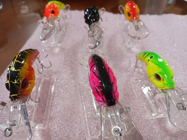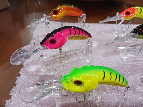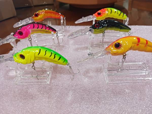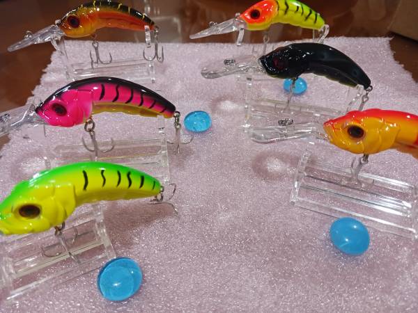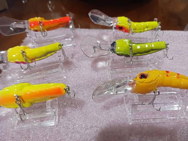 Offering six (6) new Rebel deep diving Crawdad lures in six different color combinations. Lure measures 2.5" and with the extended tongue its 4" long and weighs 5/16 ounce. This lures are floating. Please look at my pictures very carefully as what you see is exactly what you'll be getting L-#36