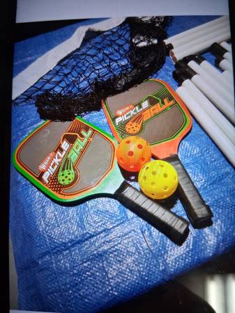 Pickleball set 2 paddles, 2 balls, and net. Net is a half court net. New this would cost $39.94 Or more. In great shape. Asking $15.00 Cash only.