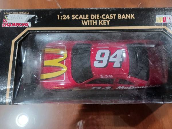 Offering a Nascar Stock new from 1994 sponsored by Mac Donalds and driven by Bill Ellilot. Car is 1:24 scale Premier Edition Bank with key, 100% Tampo Graphics with rubber tires mounted on racing style wheels. This collector piece has a SN#02630 of 10,000. It will come in the original unopened box perfect for any collector OR that certain someone who deserves a Special Xmas Gift