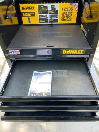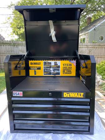 Never used. Opened it up for pics, but still in box. On arrival box looked fine, but once opened saw minor dents scattered on outside. Also noticed the right side of the top drawer had come loose. Looks like fixable. Put back in box and sealed up. Bought for $400. Asking for half.